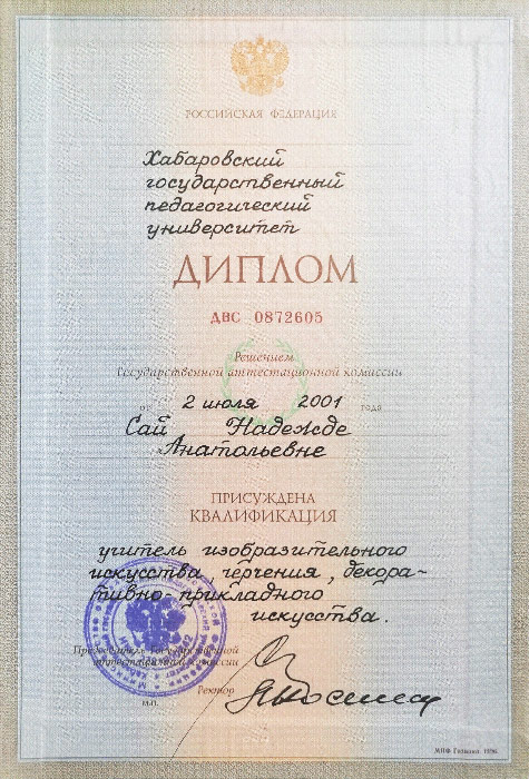 Образование высшее педагогическое (художественно-графический факультет).